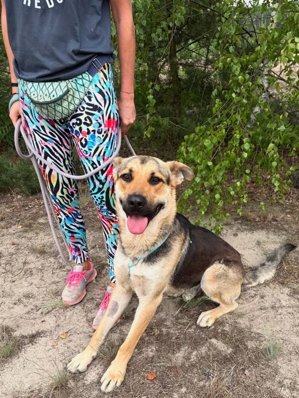 Już chodzi na spacerki na smyczy, pięknie reaguje na komendy.