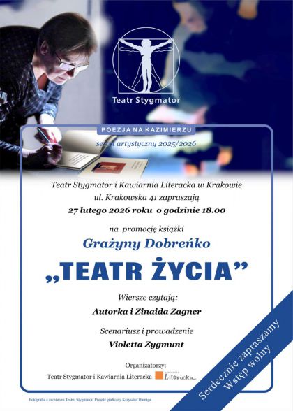 | POEZJA NA KAZIMERZU-Teatr Stygmator zaprasza. Grażyna Dobreńko "Teatr życia". |