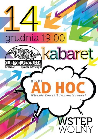 Wieczr komedii improwizowanej w wykonaniu grupy "Ad Hoc" ju w najbliszy pitek o godzinie 19.00 na synnej scenie "Klubu Pod Jaszczurami".