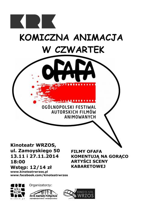 Komiczna animacja w czwartek to pokazy filmowe animacji nagradzanych podczas Oglnopolskiego Festiwalu Autorskich Filmw Animowanych, odbywajcego si od lat w kinoteatrze Wrzos. Pokazom towarzyszy bdzie improwizowany komentarz komediowy.