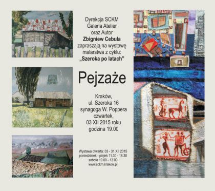 Staromiejskie Centrum Kultury Modziey w Krakowie serdecznie zaprasza na wystaw malarstwa Zbigniewa Cebuli. Wernisa odbdzie si 3 grudnia o godz. 19.00 w SCKM ul. Szeroka 16. Wystaw bdzie mona podziwia do 31 grudnia 2015 roku od poniedziaku do pitku w godzinach 11.3018.30.