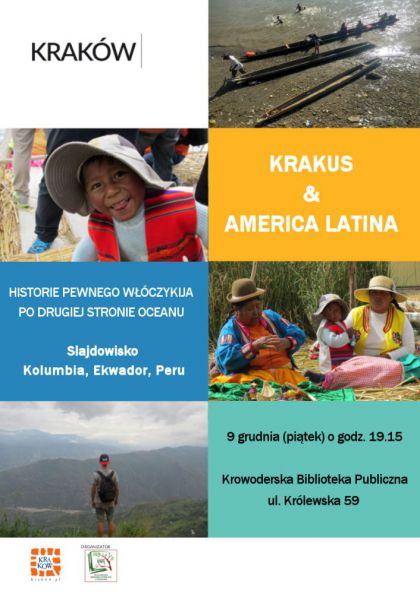 Jeli lubisz podrowa, odkrywa odlege kraje, fascynuje Ci Ameryka aciska, a w szczeglnoci Kolumbia, Ekwador oraz Peru, to zapraszamy 9 grudnia (pitek) o 19.15 na slajdowisko Antoniego Sikory pt. KRAKUS & AMERICA LATINA. Historia pewnego wczykija po drugiej stronie oceanu