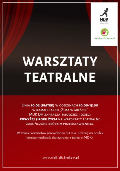 Dnia 10 lutego (pitek) w godzinach 10.00-15.00 w ramach akcji Zima w miecie MDK Dom Harcerza, ul. Reymonta 18 zaprasza modzie i dzieci powyej 9 roku ycia