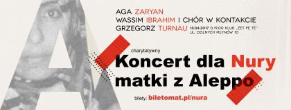 Grupa mieszkacw i mieszkanek Krakowa oraz Polska Misja Medyczna / Polish Medical Mission zapraszaj na Koncert Charytatywny dla Nury Nataah z Aleppo, 18 kwietnia, o g. 19 Zet Pe Te ul. Dolnych Mynw 10.
