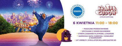 Rollercoaster w Bonarce? W Krainie Cudw wszystko jest moliwe. Ju 6 kwietnia od godz. 11:00 do 18:00 w centrum na placu przy fontannie powstanie niezwyke miejsce zabawy, w ktrym urzeczywistni si dziecice marzenia i sny. W programie: interaktywne przedstawienie muzyczne, symulator kolejki grskiej, basen z pieczkami oraz liczne konkursy.