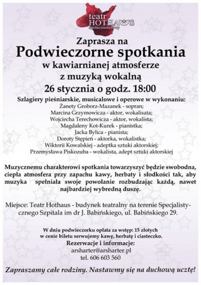Teatr Hothaus gorco zaprasza Pastwa na koncert inaugurujcy podwieczorne spotkania ze sztuk.