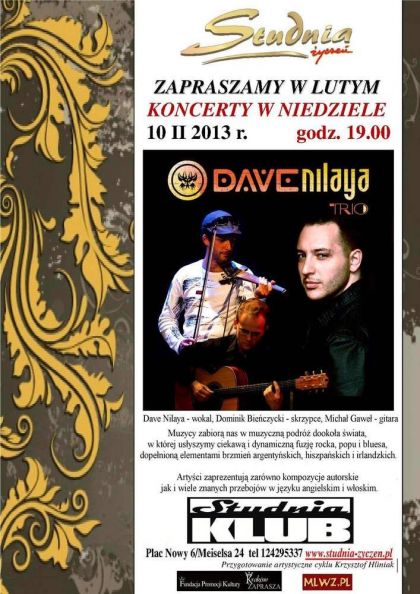 Klub Studnia, Plac Nowy 6, zaprasza na koncert wosko-polskiej formacji DAVE NILAYA TRIO, w skadzie: