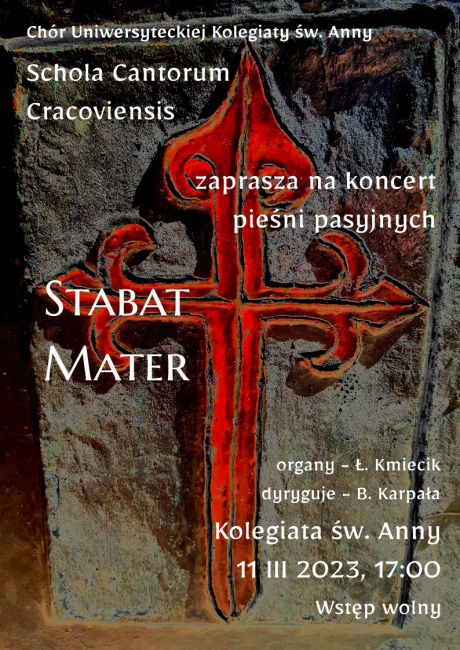 Chór Kolegiaty św. Anny Schola Cantorum Cracoviensis zaprasza na koncert pieśni pasyjnych Stabat Mater.