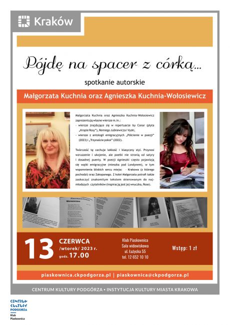 Małgorzata Kuchnia oraz Agnieszka Kuchnia-Wołosiewicz zaprezentują własne wiersze m.in.: