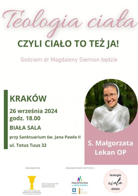 W tym miesiącu gościem dr. Magdaleny Siemion będzie Siostra Małgorzata Lekan, dominikanka, absolwentka studiów teologicznych we Franciscan University of Steubenville w USA i w Katolickim Uniwersytecie Lubelskim oraz Instytutu Studiów nad Seksualnością w Catholic Theological Union w Chicago. Jest zaangażowana w szeroko rozumiane dzieło ewangelizacji, zwłaszcza w działalność na rzecz kobiet. Prowadzi liczne kursy i warsztaty oraz autorski program "Sobotnie Sesje Samorozwoju" poświęcony odkrywaniu bezcennego daru kobiecości. Autorka bestsellerowej książki "Boska ja. Kobiecy przewodnik po mieście, którym jestem".