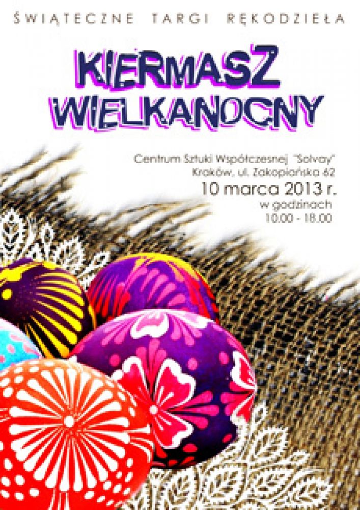 Centrum Sztuki Wspólczesnej Solvay w Krakowie, przy ul. Zakopianskiej 62 ma zaszczyt zaprosić na wišteczne Targi Rękodzieła w dniu 10 marca 2013 roku (niedziela) w godzinach od 10:00 do 18:00.
