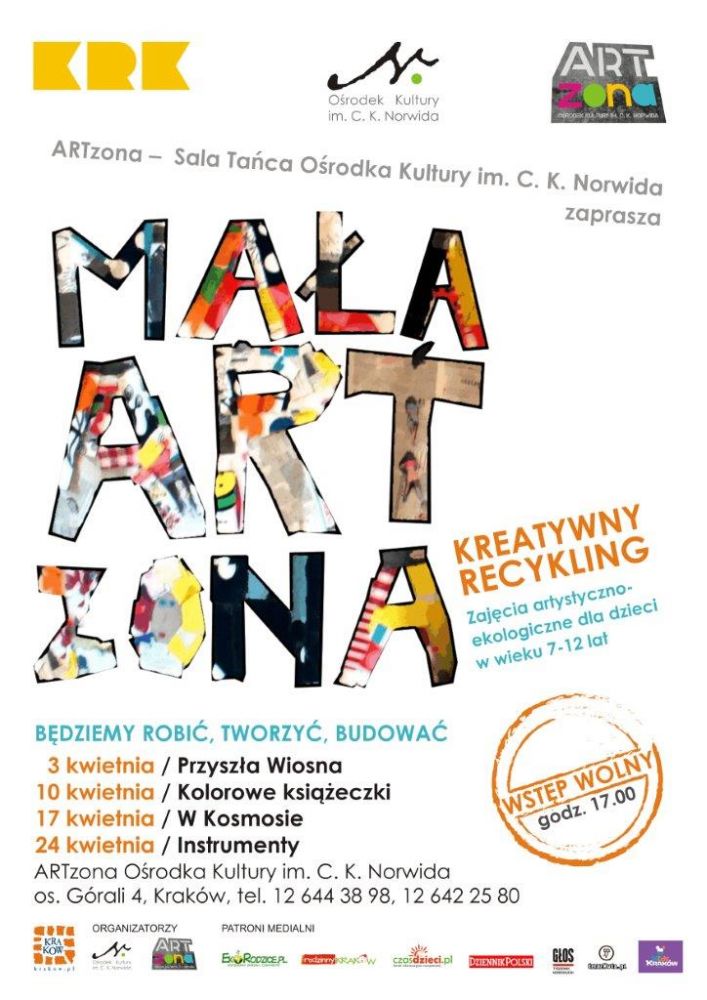 Mała ARTzona to artystyczno-ekologiczne zajęcia dla dzieci, wykorzystujšce kreatywne zabawy, upcykling, czyli wykorzystanie zużytych materiałów. Będziemy tworzyć zabawki, biżuterię i inne przedmioty. Pokażemy dzieciom jak przy odrobinie chęci można połšczyć oszczędnoœć, pożytecznoœć i œwietnš zabawę!
