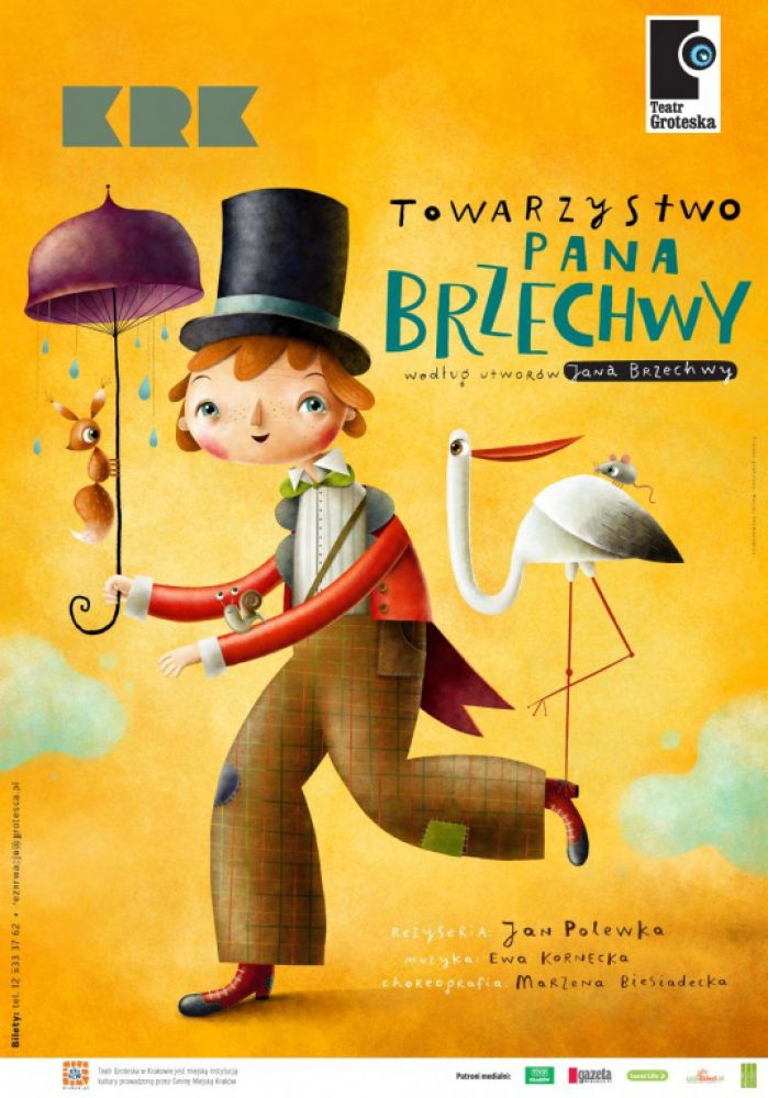 Bohaterem przedstawienia jest dzielny i utalentowany chłopiec Tomek Drops. Wysłany przez starszych braci w œwiat, decyduje się spełnić swoje marzenia i zakłada wędrowny teatr. Po drodze spotka: Bociana, Myszkę, Wiewiórkę, Œlimaka i Stonogę – zwierzštka, które wstępujš do jego grupy aktorskiej. Reżyser Tomek i jego aktorzy odnoszš olbrzymie sukcesy. Przedstawienie mšdre, dowcipne, oparte na znakomitej literaturze Jana Brzechwy, pełne doskonałych wierszy i piosenek. Całoœć utrzymana w konwencji teatru maskowego skrzy dowcipem i zachwyca zespołowš grš aktorskš.