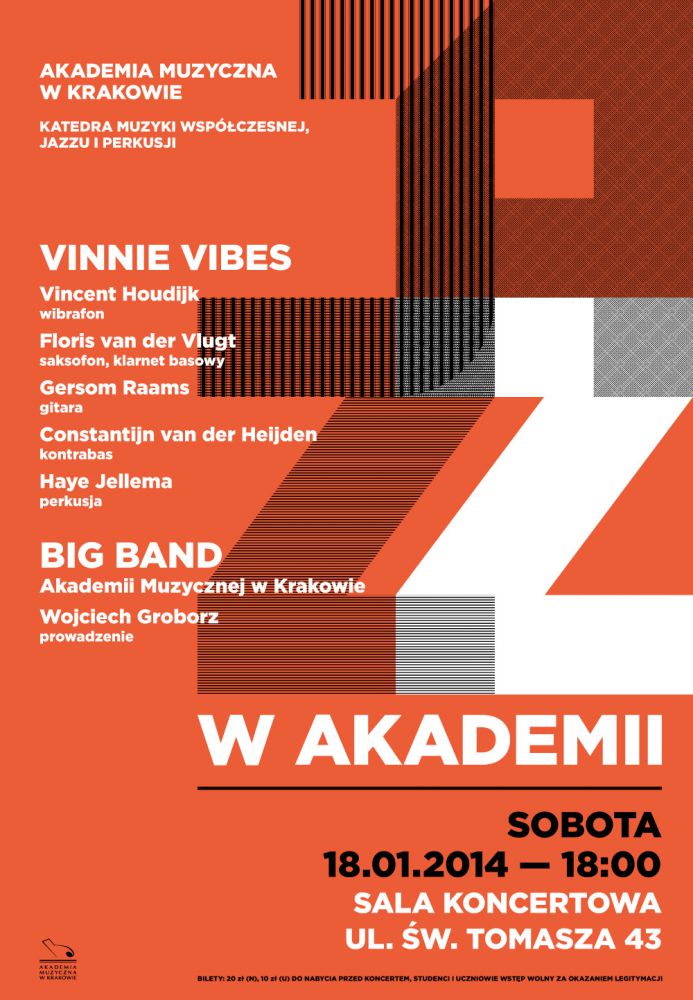 W sobot 18 stycznia o godzinie 18:00 w Sali koncertowej Akademii Muzycznej przy ul. w. Tomasza 43 wystpi Big Band Akademii Muzycznej w Krakowie pod dyrekcj Wojciecha Groborza wraz ze znakomitymi muzykami zespou VINNIE VIBES z Holandii.