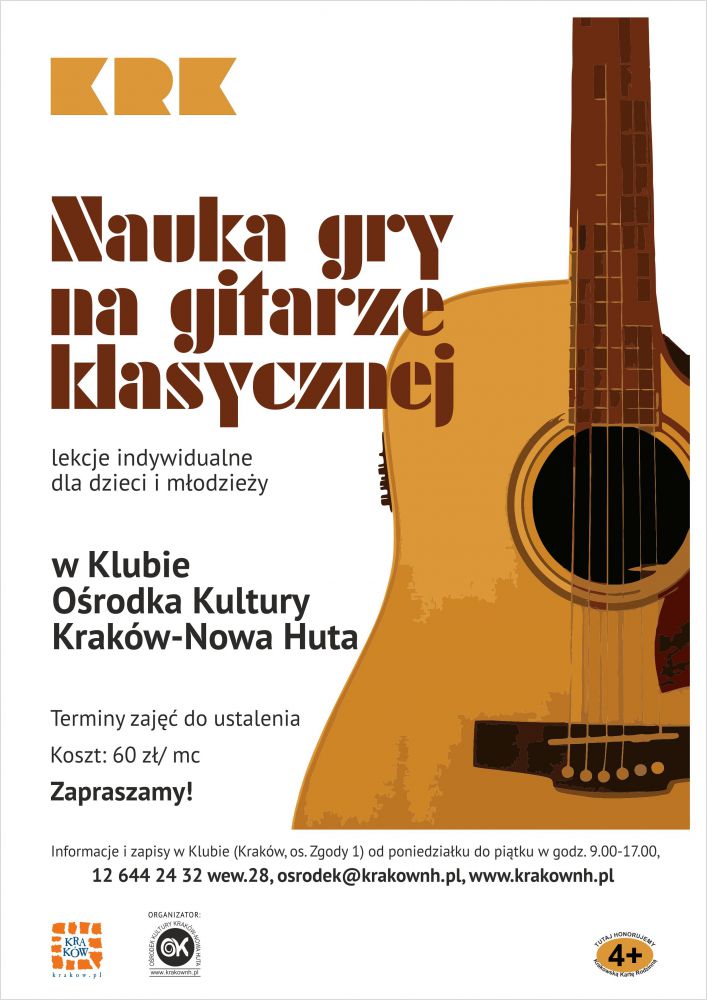 Klub Orodka Kultury Krakw-Nowa Huta przyjmuje zapisy na nauk gry na gitarze klasycznej.