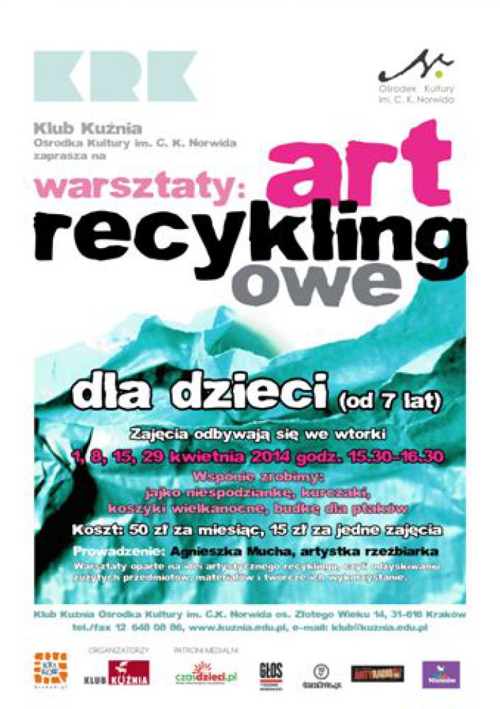 Warsztaty oparte sš na idei artystycznego recyklingu, czyli odzyskiwaniu zużytych przedmiotów, materiałów i twórcze ich wykorzystanie.