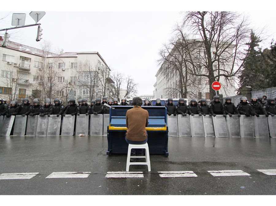Sztuka od poczštku towarzyszyła protestom, była wyrazem oporu wobec rosyjskich wpływów w skorumpowanym państwie i przestrzeniš wolnoci. Artyci tworzyli na Majdanie, wystawiali tam swoje prace, projektowali plakaty i organizowali performansy.