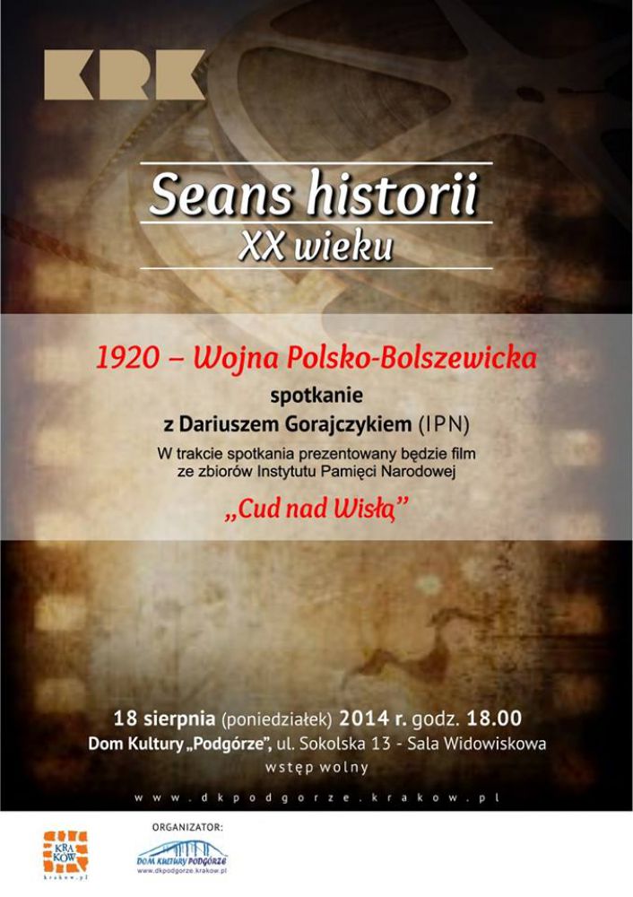 Zapraszamy na spotkanie z Dariuszem Gorajczykiem (IPN) dot. Wojny polsko-bolszewickiej 1920 oraz pokaz filmu ze zbiorw IPN Cud nad Wis