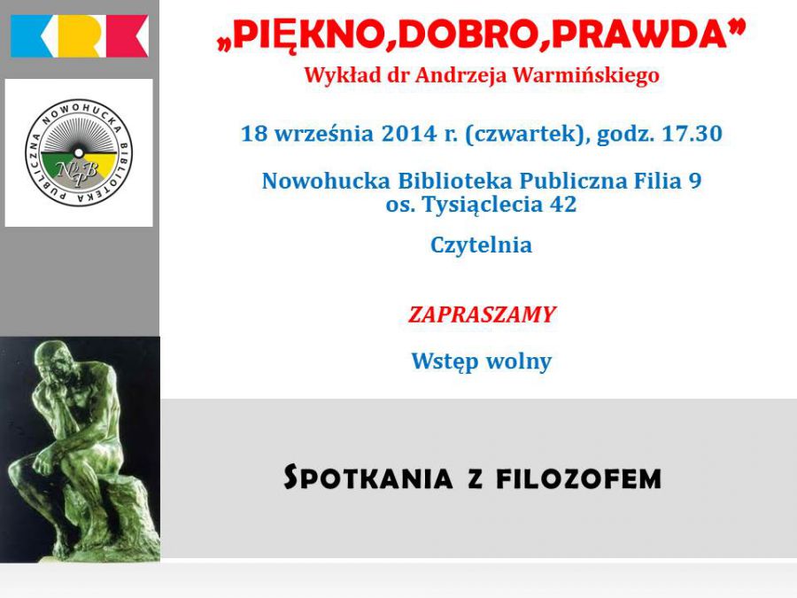 wykad dr Andrzeja Warmiskiego Pikno, dobro, prawda. Dr Andrzej Warmiski jest pracownikiem Instytutu Filozofii i Socjologii Uniwersytetu Pedagogicznego w im. Komisji Edukacji Narodowej w Krakowie.