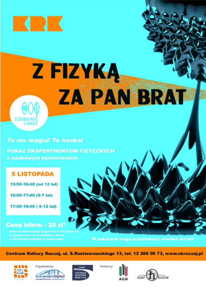 Zapraszamy na niezwykły pokaz dowiadczeń fizycznych "Z fizykš za pan brat" organizowany przez Centrum Kultury "Ruczaj" w ramach warsztatów "Szkiełko i oko".