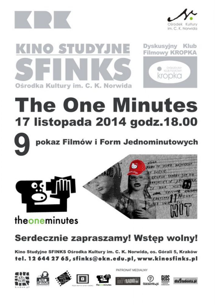 Pokaz najlepszych jednominutówek to zastrzyk emocji i dobrej zabawy dlatego - już po raz dziewišty Kino Studyjne Sfinks Orodka Kultury im. C. K. Norwida zaprasza do obejrzenia nagrodzonych i wyróżnionych obrazów Festiwalu Filmów i Form Jednominutowych The One Minutes!