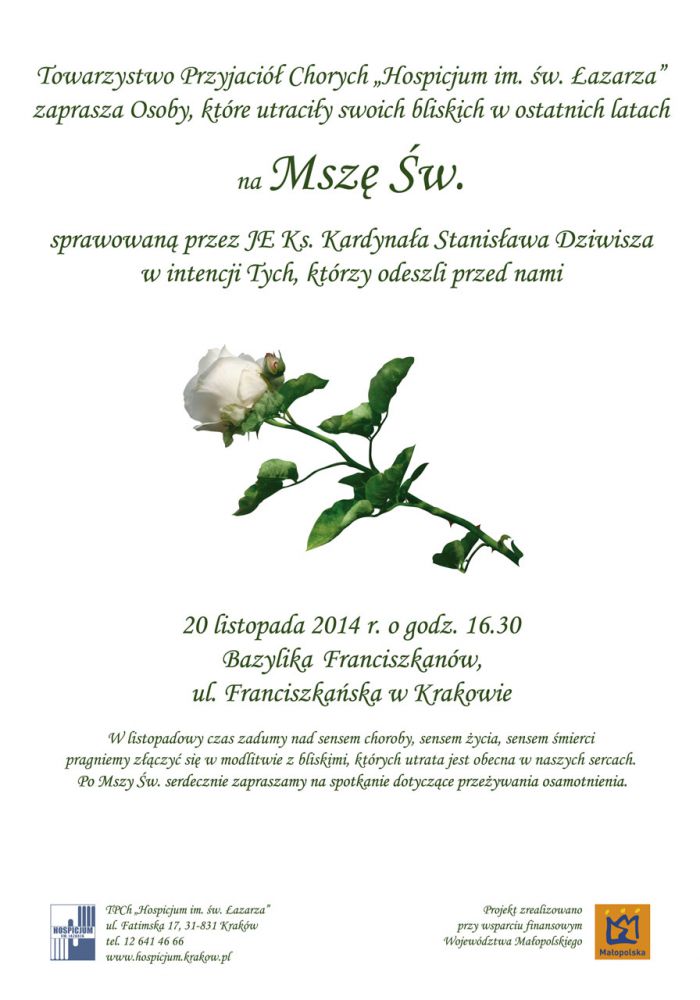Towarzystwo Przyjaciół Chorych „Hospicjum im. œw. Łazarza" zaprasza Osoby, które utraciły swoich bliskich w ostatnich latach