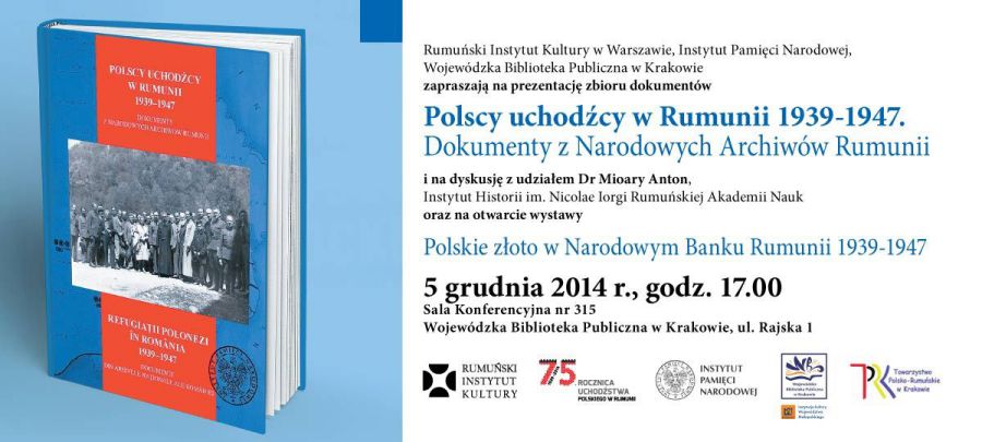 Instytut Pamięci Narodowej, Rumuński Instytut Kultury w Warszawie oraz Wojewódzka Biblioteka Publiczna w Krakowie zapraszajš na prezentację zbioru dokumentów Polscy uchodcy w Rumunii 1939-1947. Dokumenty z Narodowych Archiwów Rumunii