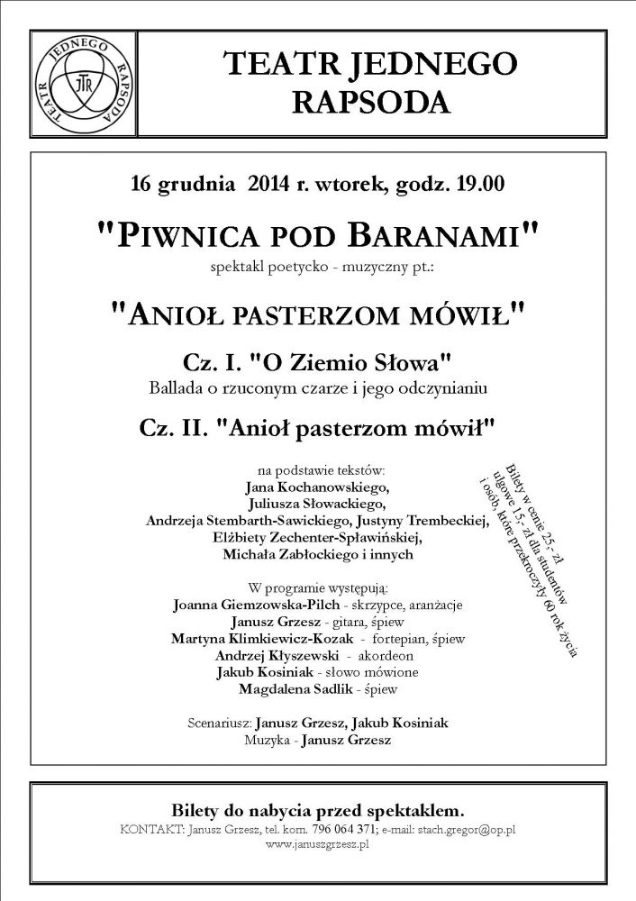 16 grudnia 2014 r. wtorek, godz. 19.00