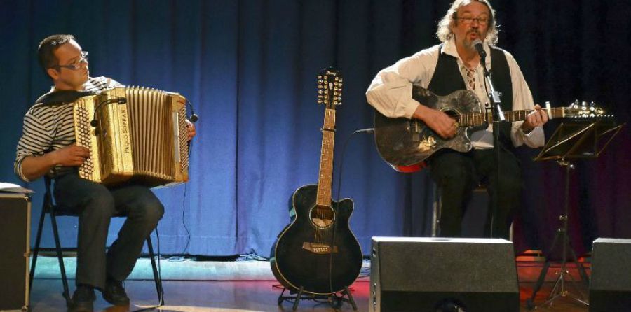 Francuski Duet Bbord-Tribord (Daniel Grall i Nico Brung) i kanadyjczyk Gilles Blanger bd piewali podczas koncertu w Instytucie francuskim w Krakowie.