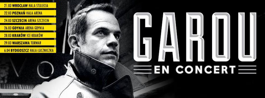 Garou tego Artysty nie trzeba nikomu przedstawiać! Rewelacyjny kanadyjski piosenkarz i multiinstrumentalista. Jego mocny i pełen emocji głos znany jest z musicalu Notre Dame de Paris, gdzie wcielił się w postać szpetnego dzwonnika oraz ze słynnego duetu z Celine Dion, którego efekty można podziwiać na jego debiutanckim kršżku z 2000 roku. Jego płyty zarówno francusko, jak i angielskojęzyczne zdobywajš statusy złotych, platynowych oraz diamentowych. Ostatni koncert Garou w Polsce zgromadził prawdziwe tłumy jego wiernych fanów. Wypełniona po brzegi warszawska Sala Kongresowa nie ustawała w owacjach, a koncert odbił się pozytywnym echem po całym kraju. W marcu 2015 roku Garou powraca do Polski! Piosenkarz odwiedzi aż siedem miast, dajšc występy, które na długi czas zapadnš w pamięć publicznoci. Garou zaprezentuje swoje największe hity, takie jak Gitan, Seul, Reviens, a także piosenki ze swojej najnowszej płyty!