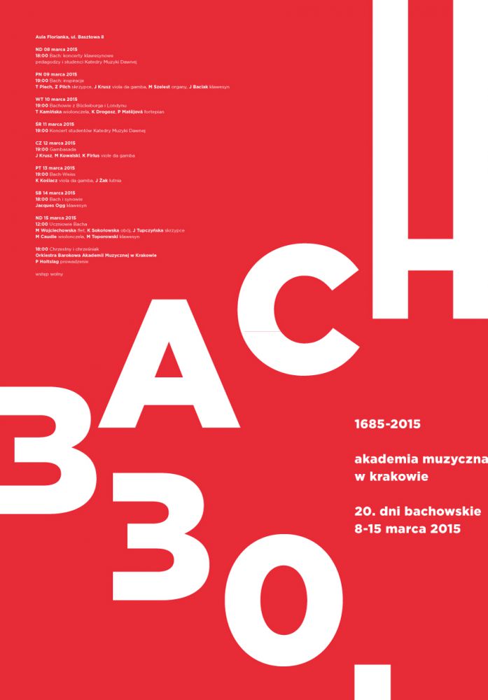 Szczegółowy program 20. Jubileuszowych Dni Bachowskich dostępny na www.amuz.krakow.pl