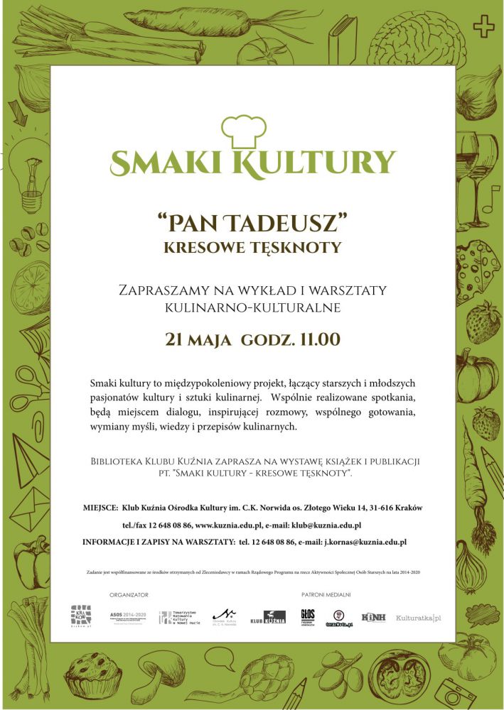 Smaki kultury to międzypokoleniowy projekt, łšczšcy starszych i młodszych pasjonatów kultury i sztuki kulinarnej. Wspólnie realizowane spotkania, będš miejscem dialogu, inspirujšcej rozmowy, wspólnego gotowania, wymiany myli, wiedzy i przepisów kulinarnych.
