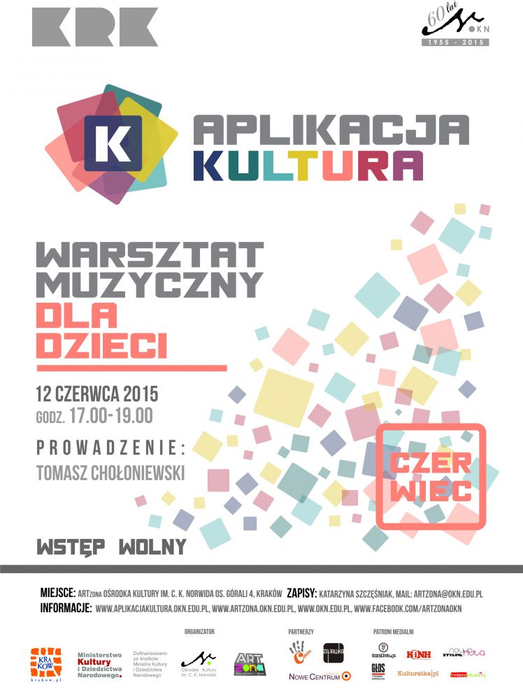 Warsztat muzyczny dla dzieci posłuży m.in. stworzeniu częciowo cieżki dwiękowej do filmów animowanych, które powstały podczas warsztatów animacji filmowej w maju. Ponadto uczestnicy będš mieli możliwoć wykorzystania różnego rodzaju przedmiotów, jako instrumentów. Uczestnicy warsztatów poznajš różne sposoby gry na instrumentach perkusyjnych, a to wszystko pod okiem prowadzšcego Tomka Chołoniewskiego.