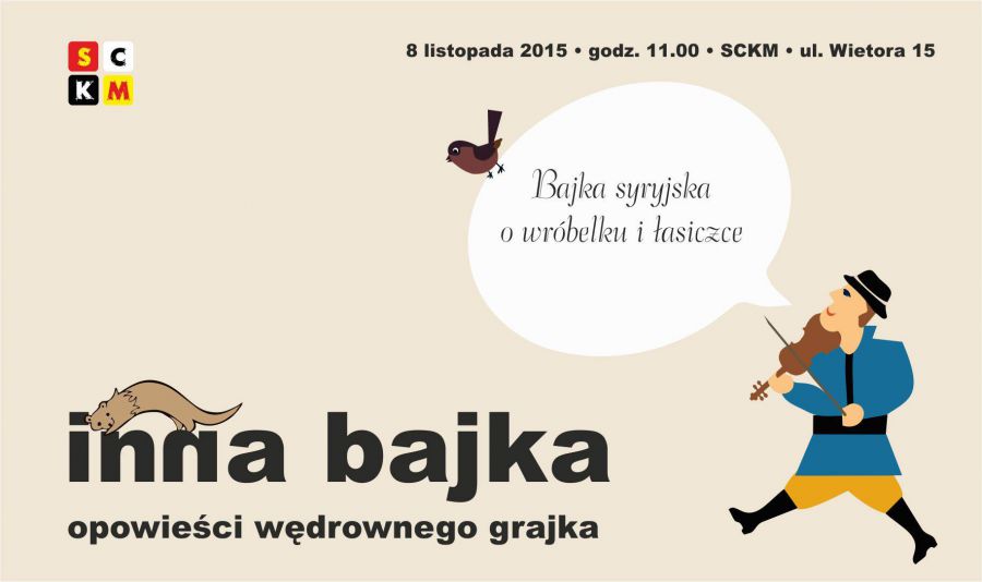 Jeżeli w jesienne popołudnia chcecie atrakcyjnie spędzić czas wraz ze swoimi dziećmi, zapraszamy do Staromiejskiego Centrum Kultury Młodzieży na "Innš bajkę - opowieci wędrownego grajka".