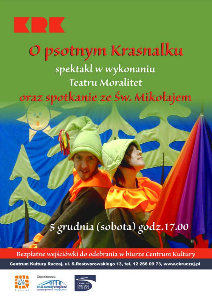 Centrum Kultury "Ruczaj" zaprasza na spektakl "O psotnym Krasnalku" w wykonaniu Teatru Moralitet i spotkanie ze więtym Mikołajem.
