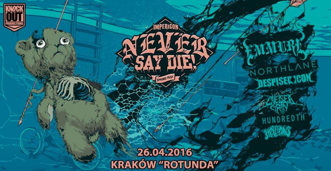 Knock Out Productions prezentuje trasę Never Say Die! w ramach, której 26.04.2016 w krakowskiej Rotundzie wystšpi Emmure, któremu towarzyszyć będš: Northlane, Despised Icon, Chelsea Grin, Hundredth, Hellions. Zapowiada się wieczór pełen deathcoreowej jazdy, metalcoreowych melodii i hardcoreowego klimatu. EMMURE (USA) deathcore, metalcore, groove metal: Wielbiciele deathcoreu powitajš tę wiadomoć z radociš ponownie do Polski zawita amerykańska załoga Emmure, którš niezmiennie dowodzi kontrowersyjny wokalista Frankie Palmeri. Zabawa polega na tym, że w 2015 roku pożegnali się z nim wszyscy dotychczasowi koledzy i póki co nie wiadomo, kto będzie wokalicie towarzyszył na scenie. Frank jak to Frank, nie załamał się decyzjš kolegów, z którymi nagrał wydany w 2014 roku kršżek Eternal Enemies. Już ma nowy skład, aczkolwiek tożsamoci nowych członków Emmure do tej pory nie ujawnił, i pracuje nad nowymi piosenkami! Jednego można być pewnym Palmeri na żadne kompromisy nie pójdzie, znów będzie wkładał kij w mrowisko, szokował. A na żywo da takiego czadu, że będziecie błagać, aby wrócił do nas jak najszybciej. Sprawd, jeli lubisz: Suicide Silence, Chelsea Grin, Whitechapel, Carnifex