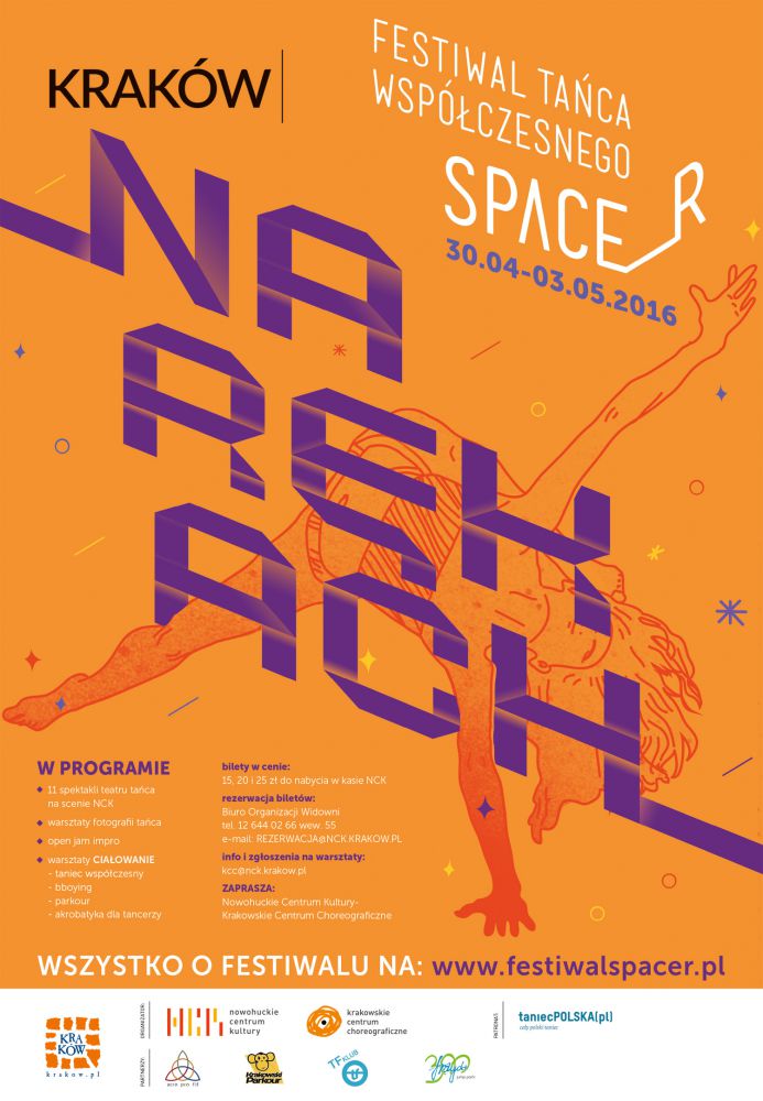 SPACER spełnia funkcję integracyjnš dla ogólnopolskiego rodowiska tanecznego Do Nowohuckiego Centrum Kultury zapraszamy osoby na różnym poziomie zaawansowania tanecznego oraz twórców zarówno uznanych choreografów, działajšcych na scenie od wielu lat, jak i młodych, utalentowanych artystów, stojšcych na poczštku swojej choreograficznej drogi.