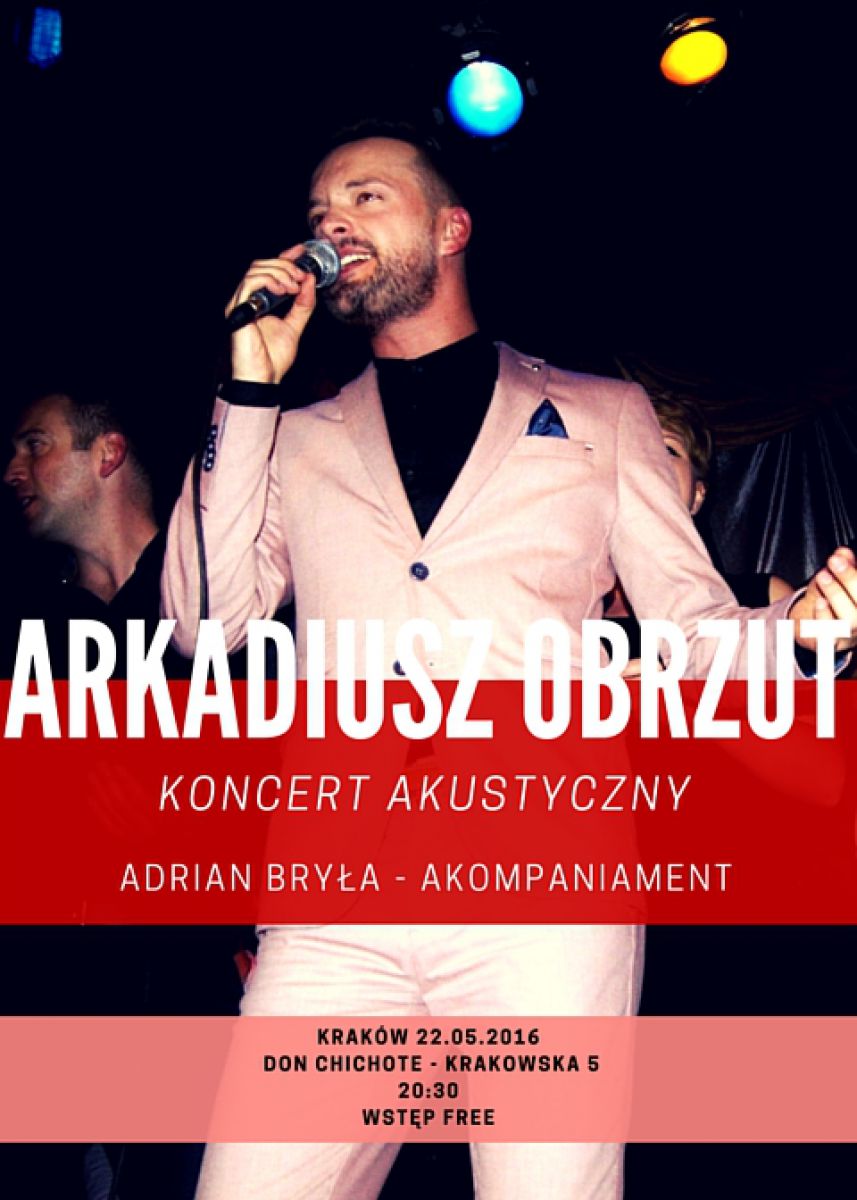 22 maja 2016 r. o godz. 20:30 w Don Chichote - jednym z najbardziej klimatycznych miejsc na koncertowej mapie Krakowa zagra koncert akustyczny Arkadiusz Obrzut!