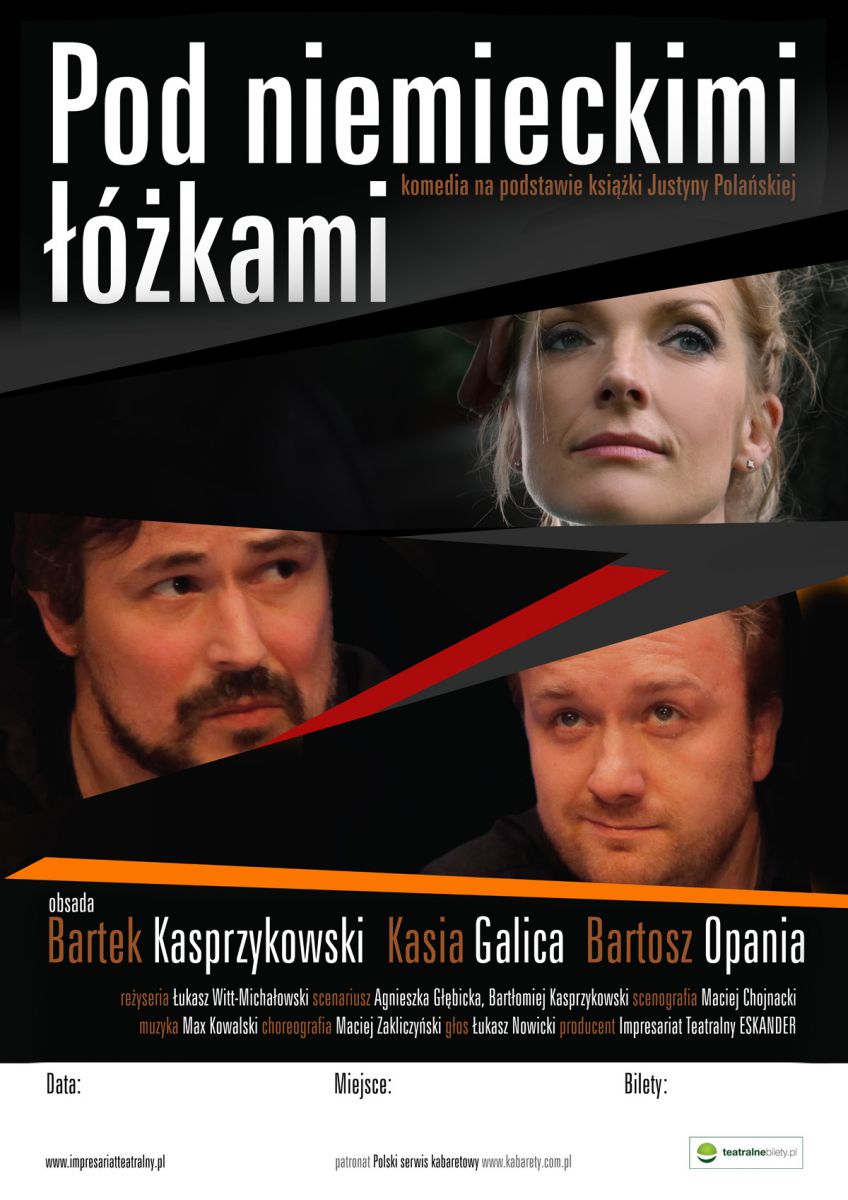 Przedstawienie "Pod niemieckimi łóżkami" w reżyserii Łukasza Witt-Michałowskiego to teatralna impresja na temat ksišżki wydanej w Niemczech pod tym samym tytułem. Bohaterkš spektaklu jest polska sprzštaczka, wygarniajšca wstydliwe brudy spod stereotypowo schludnych łóżek swoich niemieckich pracodawców. Justyna w dowcipny i bezporedni sposób obala stereotypy dotyczšce "tych czystych" Niemców, pokazuje ich słaboci i uprzedzenia. Tymczasem w Polsce dzięki wydanej ksišżce staje się bohaterkš, celebrytkš i gwiazdš. Stopniowo ubierana przez media w kolejne brokatowe płaszcze sławy, ugina się pod ich ciężarem i spada z plastikowego postumentu. Historia o niemieckich brudach, polskich celebrytach oraz blaskach i cieniach sławy przeznaczona dla widzów dorosłych.
