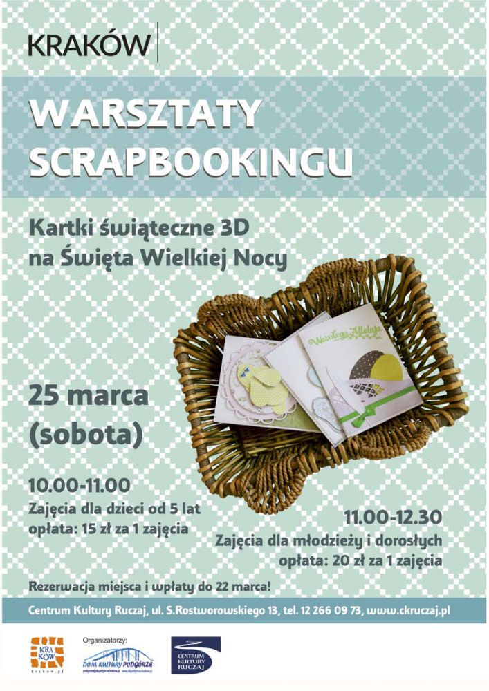 Zapraszamy do udziału w warsztatach scrapbookingu dzieci od 5 lat, młodzież i i dorosłych.