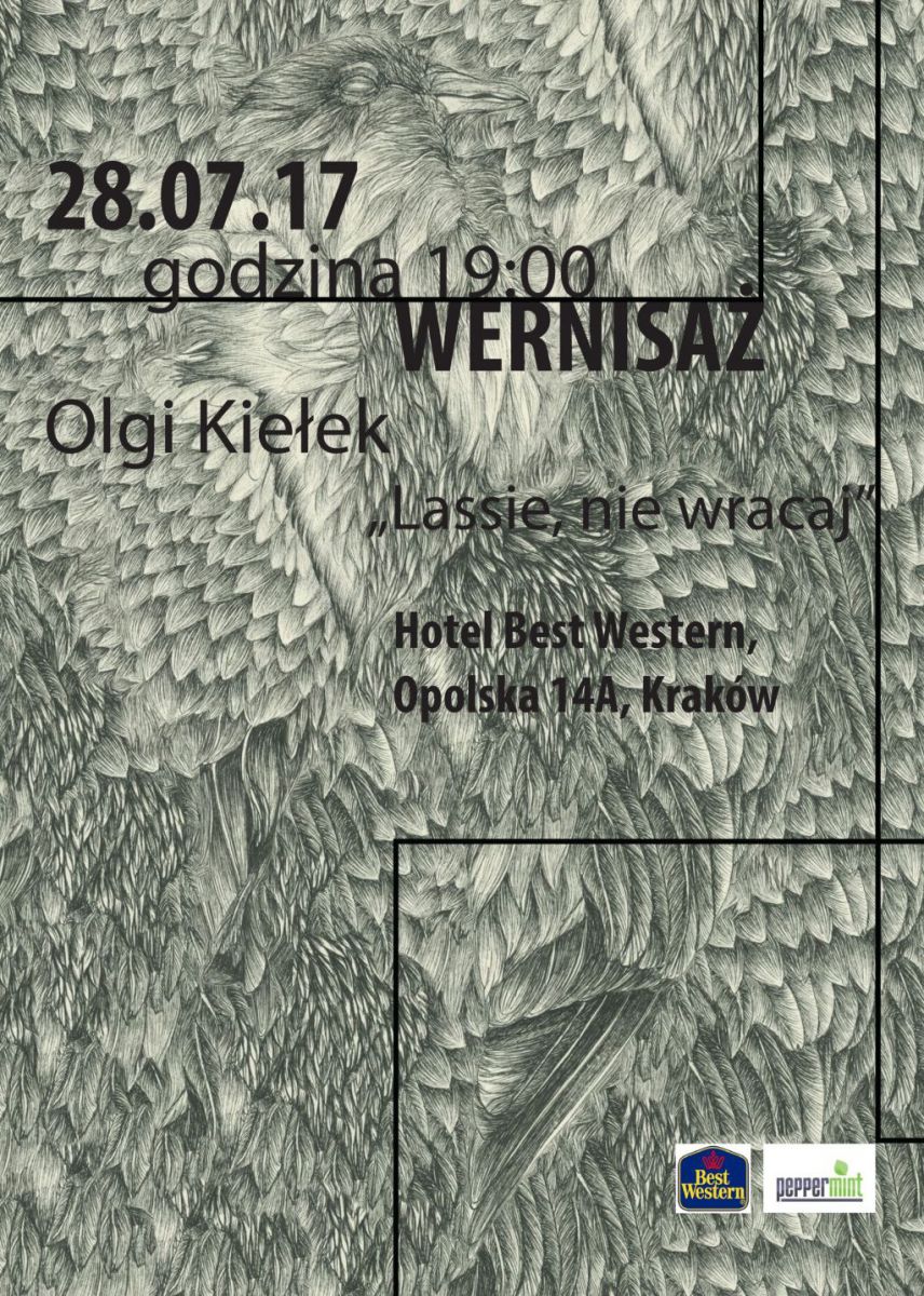 Agencja Artystyczna PepperMint zaprasza na kolejny wernisaż w Hotelu Best Western (Opolska 14A), już 28 lipca (pištek), o godz. 19. Tym razem, we foyer hotelu, będzie można zobaczyć wystawę inspirowanš losem zwierzšt w dzisiejszym œwiecie, „Lassie, nie wracaj”. Autorkš wystawy jest Olga Kiełek, młoda, zdolna artystka. Absolwentka Wydziału Grafiki Akademii Sztuk Pięknych w Krakowie, dla której sytuacja zwierzšt nie jest obojętna, a sztuka daje możliwoœć wyrażania uczuć zwišzanych z ich cierpieniem i zabrania głosu sprzeciwu wobec częstej dzisiaj sytuacji znęcania się nad nimi.