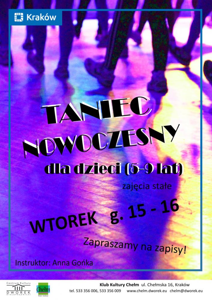 Klub Kultury Chełm zaprasza dzieci od 5 lat do 9 lat na nowe zajęcia z tańca nowoczesnego.