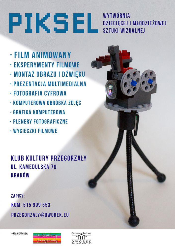 Wytwórnia Dziecięcej i Młodzieżowej Sztuki Wizualnej PIKSEL zaprasza pasjonatów filmu i sztuk plastycznych. Twórz, wykorzystujšc nowoczesne technologie i tradycyjne techniki plastyczne. Znajd sposób na wyrażanie swojej kreatywnoci!