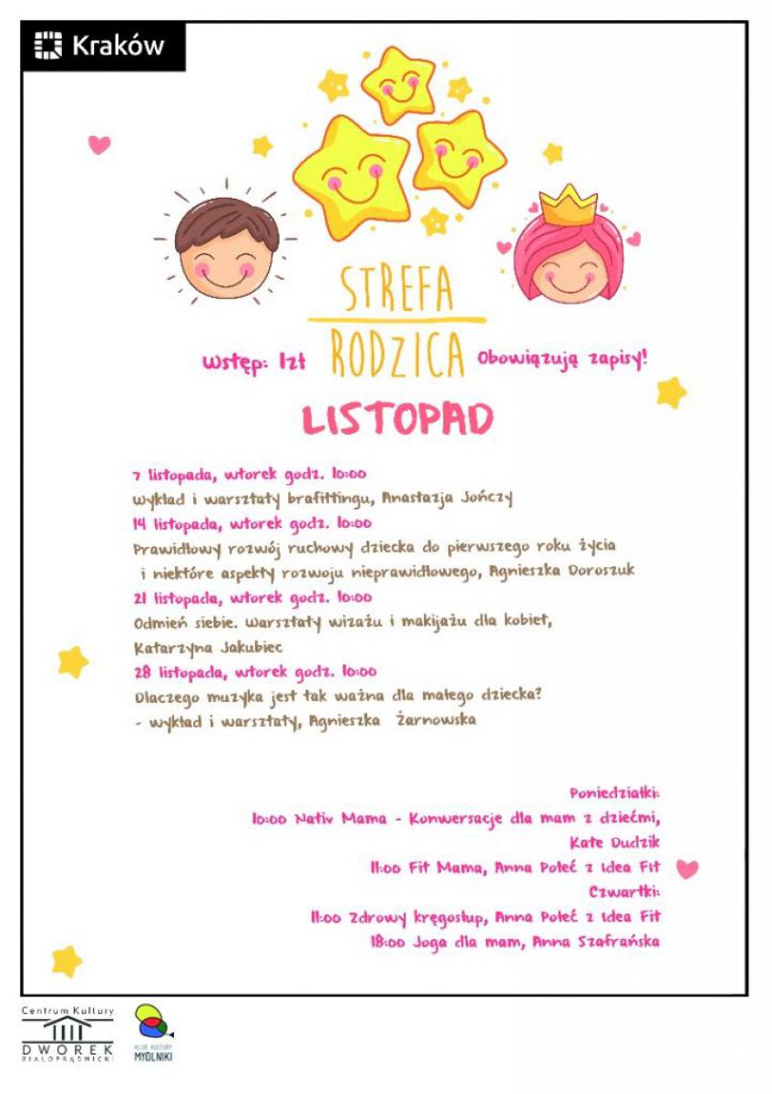 Strefa Rodzica projekt wspierajcy rozwj rodzin z dziemi oraz oczekujcych potomstwa. Dzieci si bawi, a rodzice odpoczywaj, rozmawiaj ze sob, wymieniaj si dowiadczeniami, ucz. W Strefie w naszym Klubie czekaj na nich rwnie interesujce spotkania ze specjalistami oraz rodzinne warsztaty.