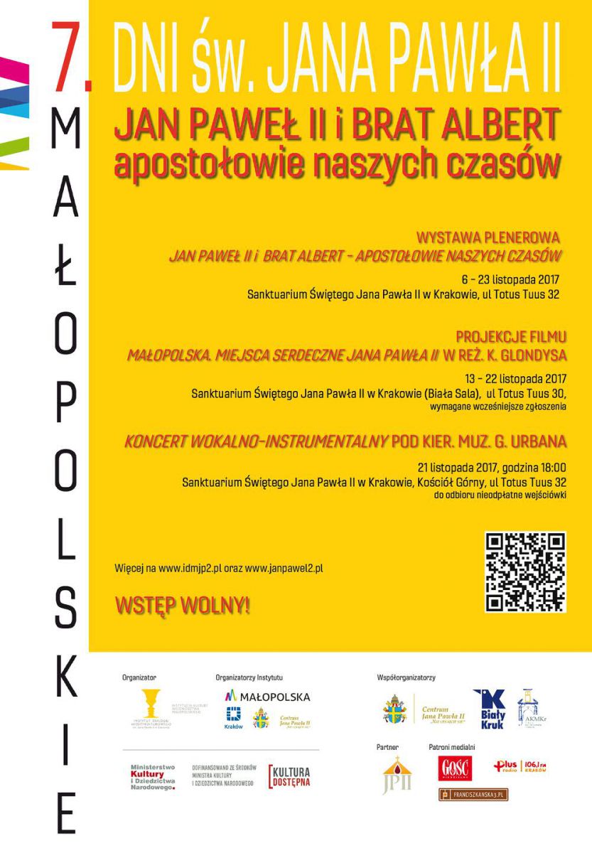 Projekt „Jan Paweł II i Brat Albert – apostołowie naszych czasów. VII Małopolskie Dni Œw. Jana Pawła II” dofinansowano ze œrodków Ministra Kultury i Dziedzictwa Narodowego w ramach programu „Kultura Dostępna”