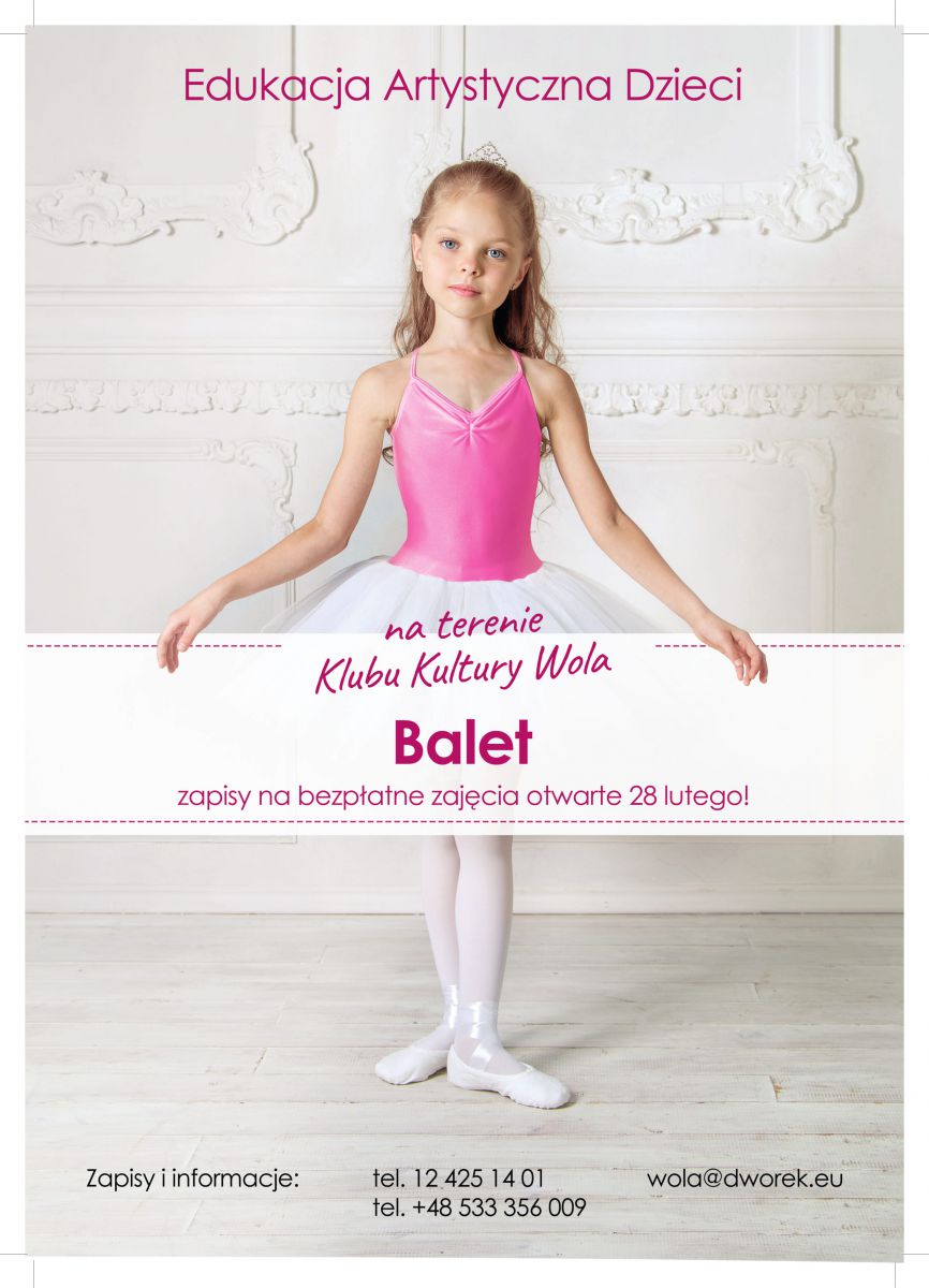 Klub Kultury Wola wraz z Edukacjš Artystycznš Dzieci zaprasza na jednorazowe bezpłatne zajęcia baletowe, dzięki którym dzieci przekonajš się, jakš cudownš rozrywkš jest taniec klasyczny!