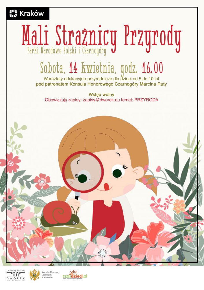 Dlaczego niektóre obszary sš objęte specjalnš ochronš? Co to jest fauna i flora? Jakie tajemnice skrywa słowo "endemit"? Zapraszamy w sobotę 14 kwietnia o g. 16.00 do Centrum Kultury Dworek Białopršdnicki na warsztaty artystyczno-przyrodnicze Mali Strażnicy Przyrody! Pod badawczš lupę wemiemy dwa Parki Narodowe Polski i Czarnogóry - Białowieski i Biogradska Gora. Obowišzujš zapisy!