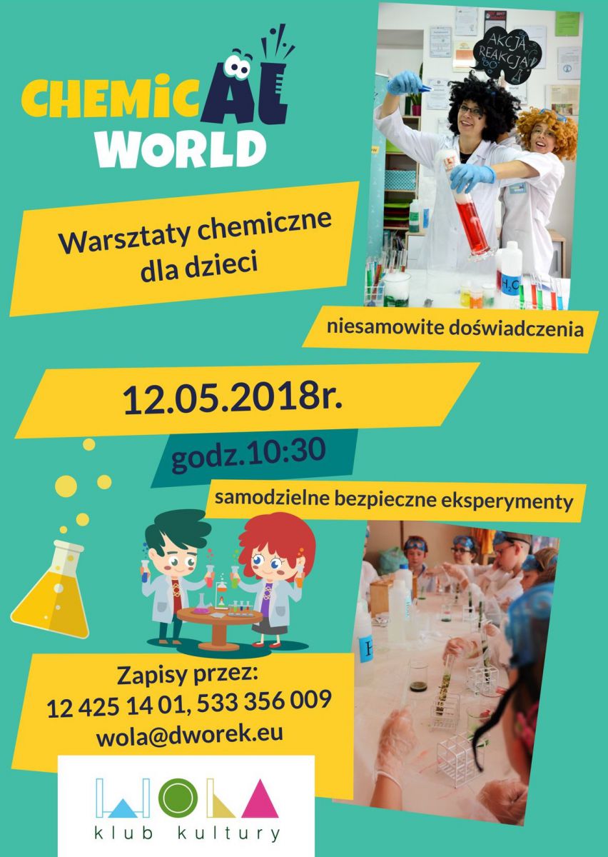 Zapraszamy wszystkie dzieci od 5 roku życia na comiesięczne warsztaty chemiczne w Klubie Kultury Wola!