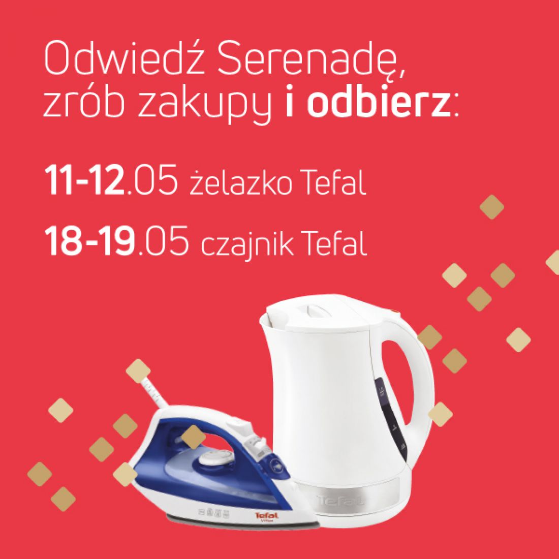 Na klientów Centrum Serenada czekajš dwie wyjštkowe akcje promocyjne, podczas których będš mogli otrzymać atrakcyjne nagrody! Wystarczy zrobić zakupy o okrelonej wartoci i odebrać upominki, takie jak żelazka oraz czajniki elektryczne firmy TEFAL.