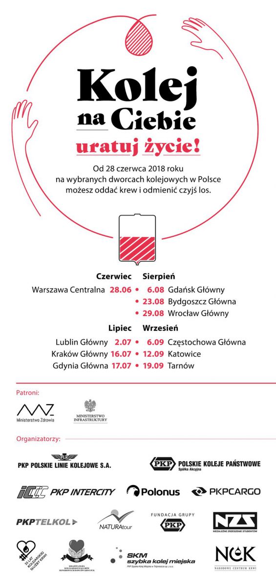 W czerwcu 2018 roku ruszyła 2. edycja przedsięwzięcia „Kolej na Ciebie – uratuj życie!”wspieranego przez spółki Grupy PKP, Fundacja Grupy PKP, a także Narodowe Centrum Krwi, Niezależne Zrzeszenie Studentów, Spółkę Polonusi Krajowš Radę Kolejarskich Klubów HDK PCK.Akcja objęta jest patronatem Ministerstwa Infrastruktury i Ministerstwa Zdrowia.